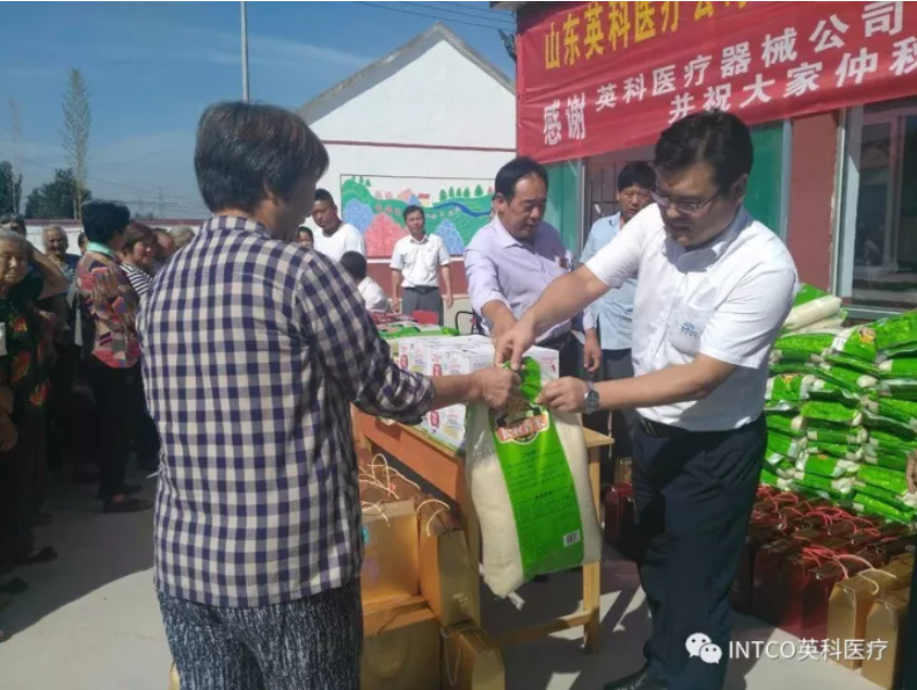 上段时间,山东纽约国际588888医疗制品有限公司召开了迎中秋、庆国庆走访慰问活动,公司行政部代表企业深入青州市邵庄镇基层村庄,为大家送去月饼、大米、牛奶等节日礼品。